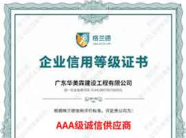 AAA級企業資信等級證書